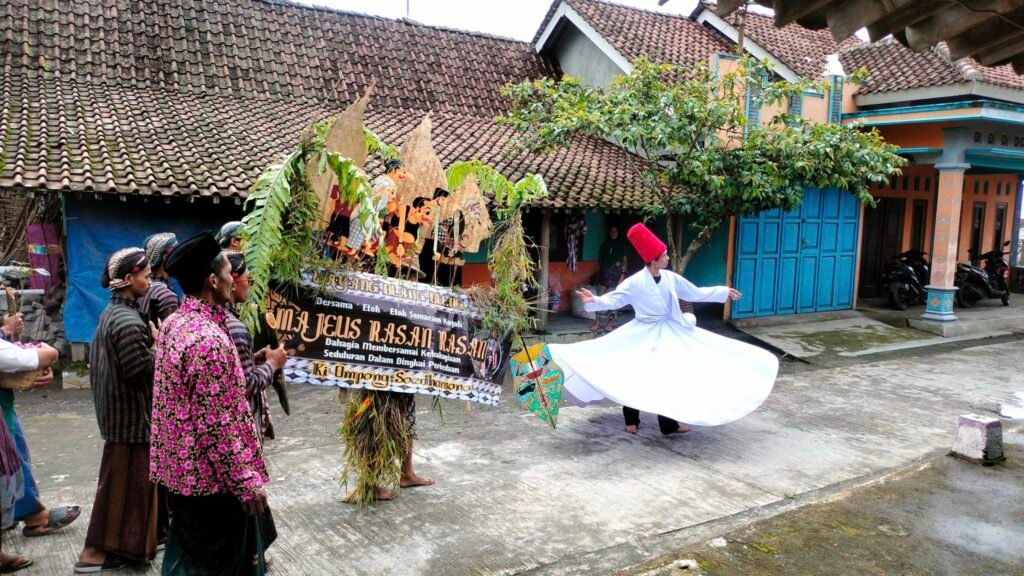Usai pertunjukan di pelataran rumah Gus Ipul, Wayang Blang Bleng Ki Ompong Soedharsono dari Temanggung, Jateng dan Mbah Minto, Tari Sufi Nusantara dari Bojonegoro, Jatim mengiringi anak-anak dan kalangan dewasa bergerak menuju lokasi penanaman pohon gowok / kupa / Syzygium polycephalum