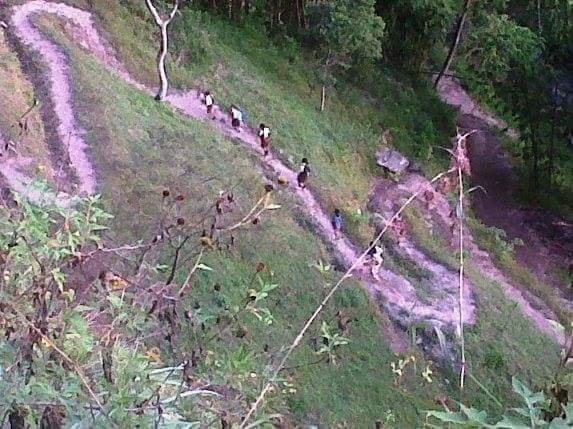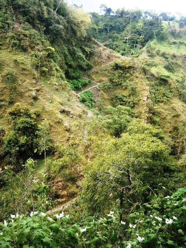 Saat itu dusun ini hanya ditempati 10 KK. Akses menuju dusun harus jalan kaki turun jurang naik jurang. Sambat tidak sambat siapapun harus mengalami perjalanan ini, kecuali kalau sewa helikopter, saya ikut.