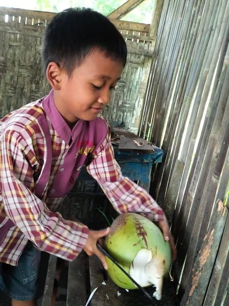Ternyata penjaga warung memang anak-anak tersebut. Mereka menemani Ardan, kelas 4 SD, yang setiap hari berjualan kelapa muda.