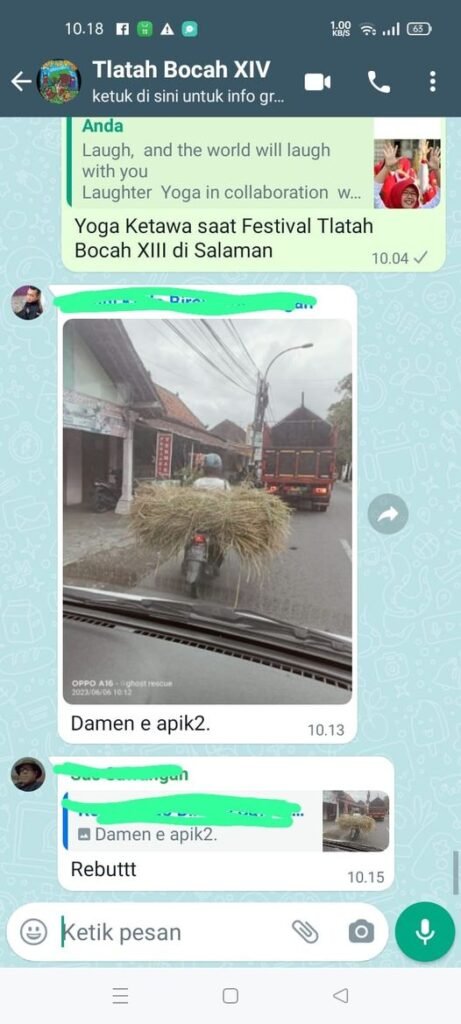 Saat di jalan ada orang bawa jerami padi, kok ya sempat-sempatnya difoto dipamerkan ke grup dengan kalimat sederhana: