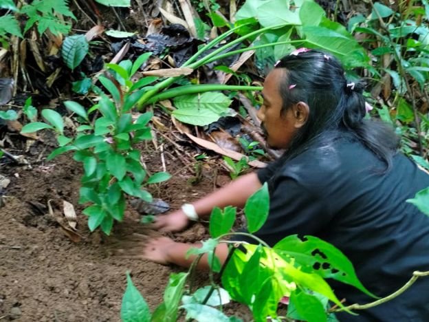 Mas Fj Kunting dan mbak Ima Achyar menanam sepasang pohon Ringin Walik (Ficus kurzii). Pohon ini merupakan sumbangan pak Bima Sudigdo dari Surabaya yang menghibahkan 1000 pohon beringin ke teman-teman Cagar Urip di Menoreh.
