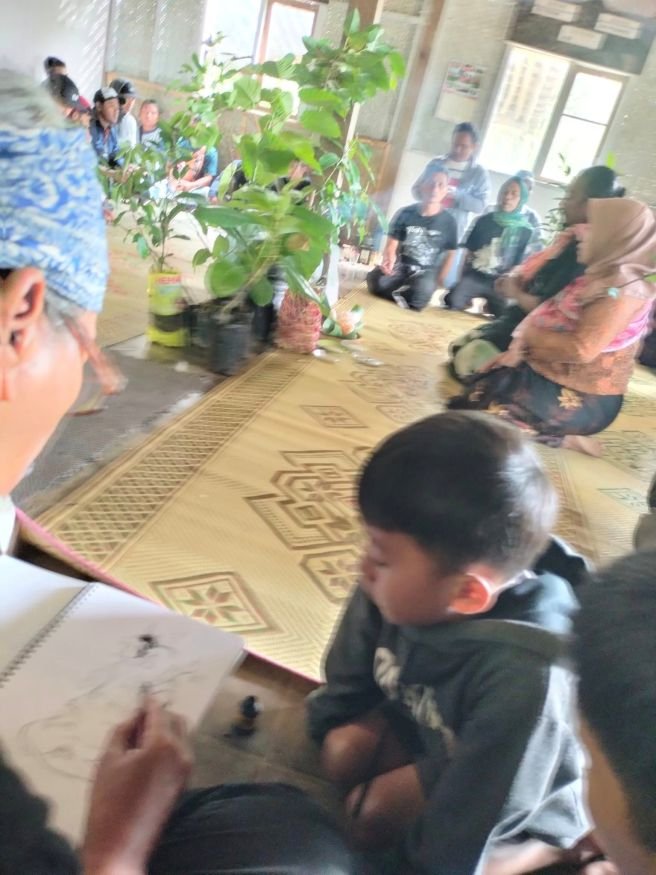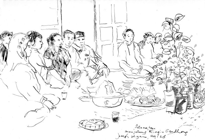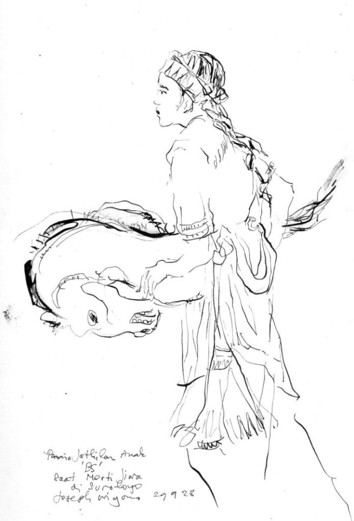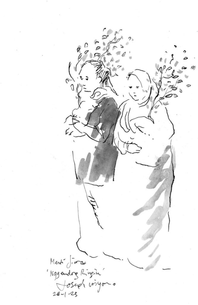 Surprais bagi kami karena selama Merti Jiwo beliau dengan ketenangan seorang begawan mengabadikan momen melalui sket-sket yang ciamik.
