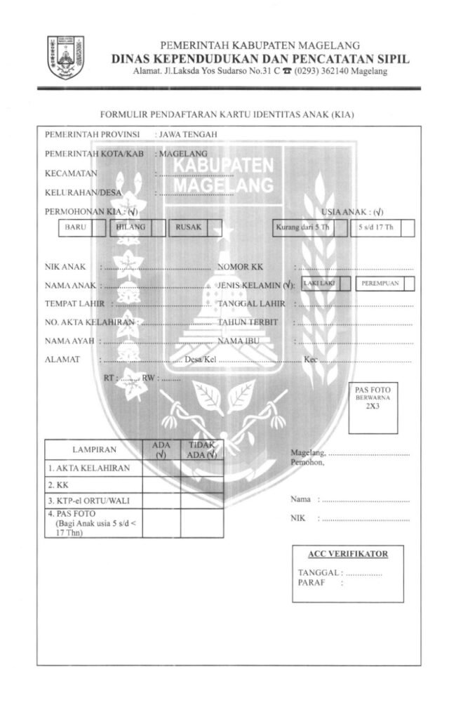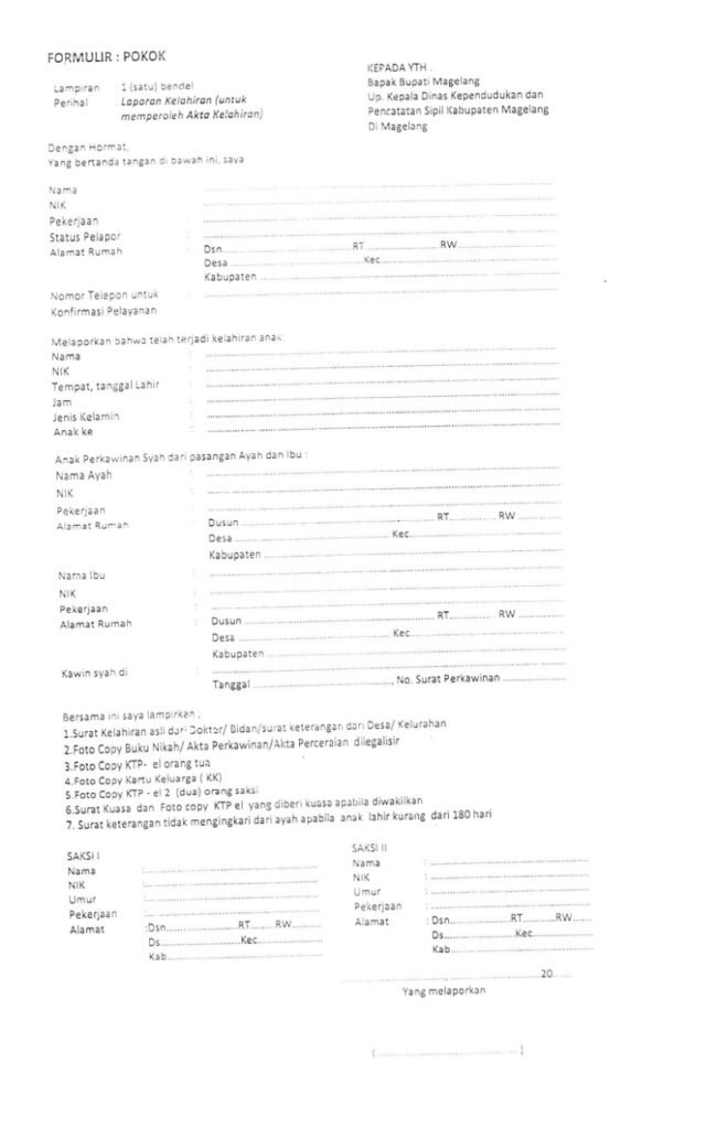 • Persyaratan dan Formulir Akte Kelahiran, Kartu Identitas Anak, dan Akte Kematian