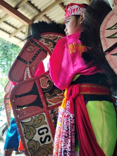 Usai ritual Ringin Gendong, kami kembali ke rumah pak kadus Eko Nomo. Di sana sudah bersiap anak-anak pentas jathilan Gunung Sari.
