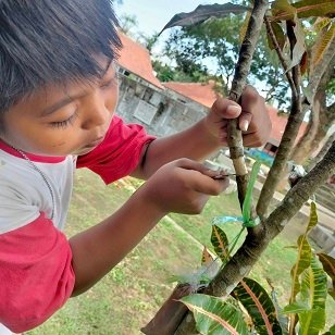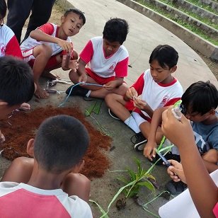 Setelah itu anak-anak belajar membuat sosis, menggunakan media cocopeat, plastik, dan tali rafia. Kemudian lanjut mencangkok pohon yang ada di sekolah, yakni puring, pule, kacang amazone, beringin benjamina, dll. Beberapa anak saking senangnya mencangkok berkali-kali lari ke sana ke mari mencari pohon yang berbeda.