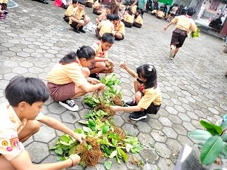 Bersama murid kelas 4, 5, dan 6 sejumlah 90 anak, kami belajar menanam bulu, iprik, dan karet kebo di botol bekas minuman. Bibit-bibit ini merupakan donasi super ikhlas dari Gembol Le yang selalu membekap.